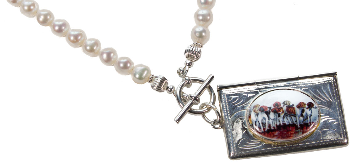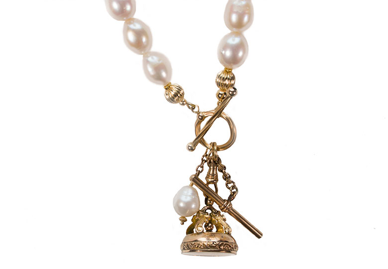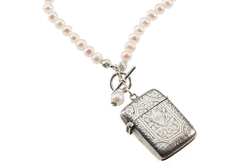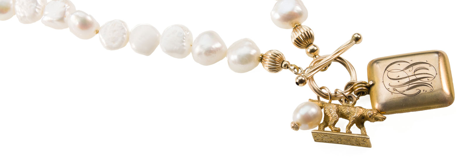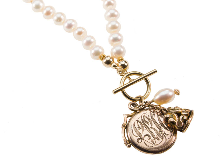 The unique one-of a kind Shelly Richards Collection pieces are hand crafted and designed using freshwater pearls, antique chain, sterling silver and gold-filled elements that are combined with a carefully curated selection of antique pieces including lockets, watch fob charms, Vesta cases and anything else that sparks her creative eye.